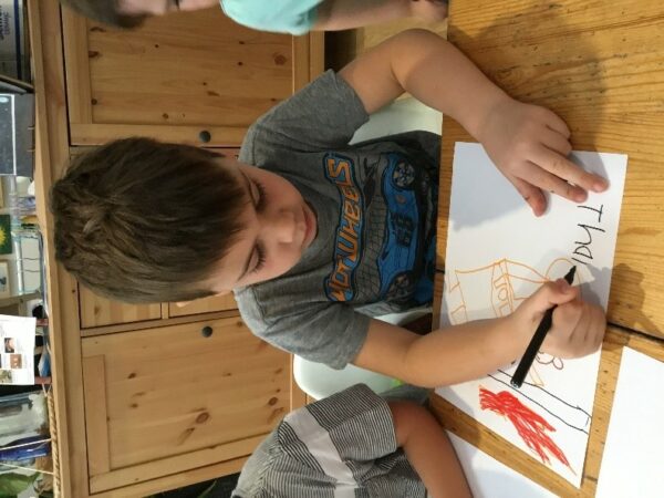 While the cookies were cooling, the children participated in another intentional teaching experience, creating thank you drawings and letters.