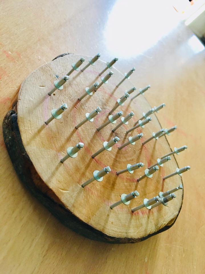 Parveen was quick to act, and in a matter of days brought in timber cut offs, nails and a hammer. She decided to build geoboards with the children, working with them one at a time to hammer the nails into the wood.