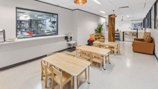 Most of our centres feature dedicated dining areas that are calm, welcoming, and designed to feel like family mealtimes. With child-sized tables and premium furnishings, these spaces encourage social connection, independence, and a positive relationship with food.