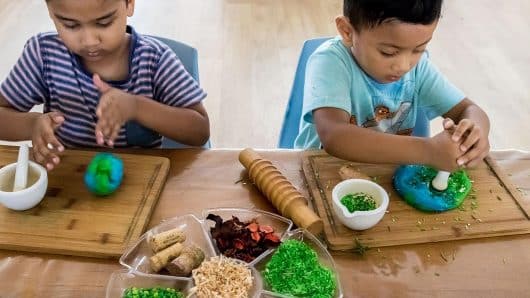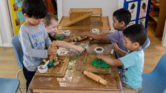 There's an opportunity for children to come together and enjoy morning tea.