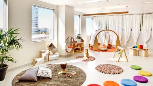As children are arriving and families are coming and going, there's an opportunity for play as well as family grouping, open-plan play and multi-age grouping.