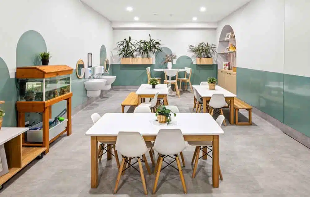 • Nappy change areas are designed to have visibility windows and are set up for maximum supervision